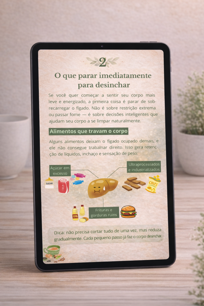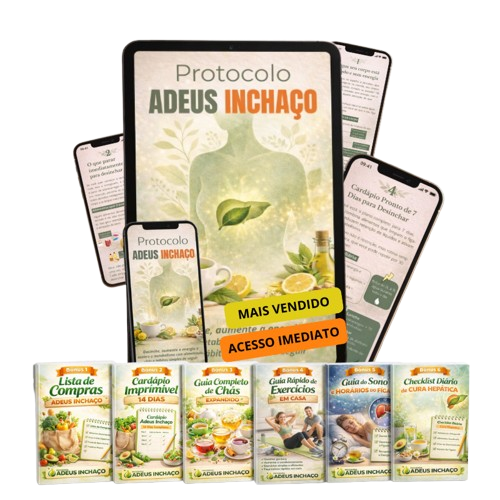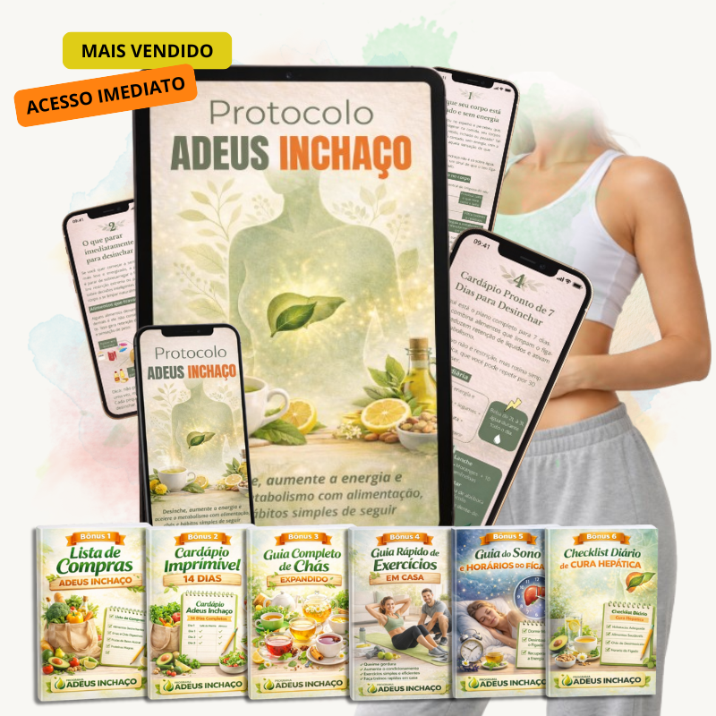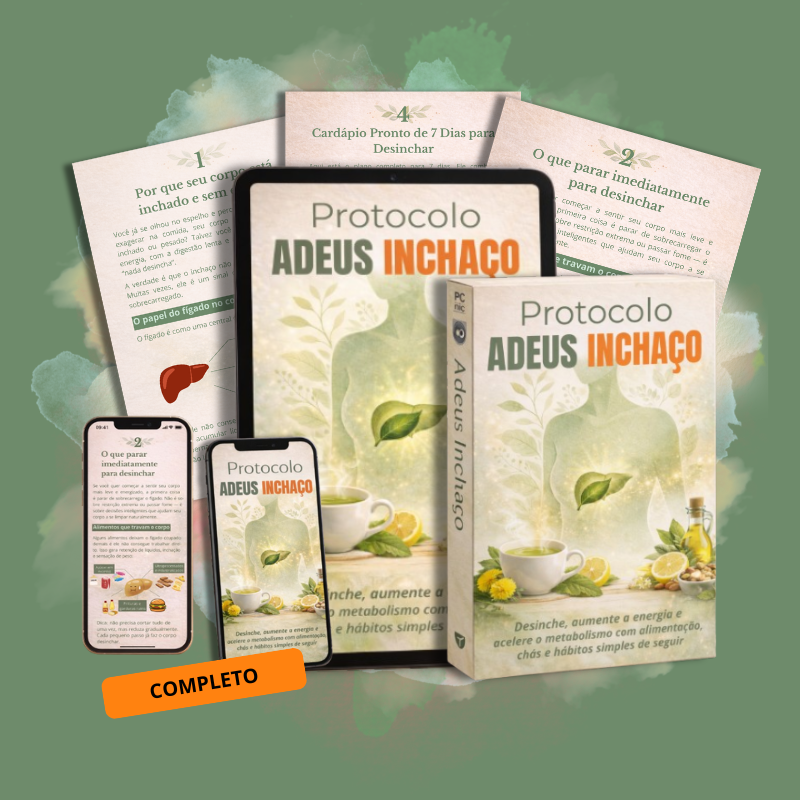 Nosso material é um passo a passo estruturado para reduzir o inchaço, melhorar a digestão e aumentar sua energia sem depender de dietas malucas.